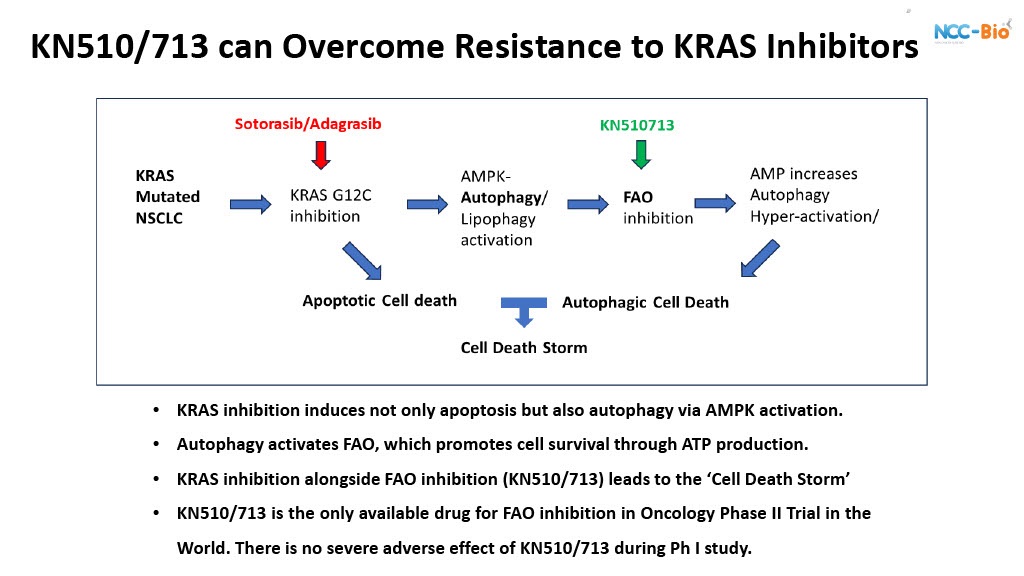 “We discovered that all cancers — especially pancreatic — depend on fatty acid oxidation (FAO) to survive treatment,” said Dr. Soo-Youl Kim, CEO of NCC-Bio and Principal Scientist at the National Cancer Center, Korea. “By inhibiting FAO with KN510713, we can completely block the energy source that cancer cells use to escape KRAS inhibition, leading to what we call a ‘Cell Death Storm’.”